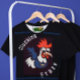Je veux dire fou avec ce drôle de t-shirt de poulet.