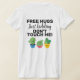 Amusant et sarcastique T-shirt de câlins gratuits pour les amateurs de cactus, avec trois beaux cactus de bandes dessinées avec des pots colorés, avec la légende "Gratuit câlins - juste plaisanter - ne me touchez pas !" en lettres modernes noires. Pour les demandes personnalisées, n'hésitez pas à me contacter à zolicestore@hotmail.com (veuillez prévoir 1-2 jours ouvrables)