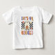 Allez les Gouls ! T-shirt bébé Un joyeux design d'Halloween avec un fantôme amical avec un panier citrouille, entouré de fleurs souriantes et un décor rétro à damiers. Le texte animé "LET’S GO GHOULS" ajoute un cri de ralliement ludique pour le plaisir éffrayant saison.