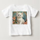 T-shirt bébé avec un chat blanc dans le style d'Alphonse Mucha ! Ce chaton aux yeux bleus pose avec des fleurs roses et des couvertures bleues. Un cadeau fabuleux pour les amoureux de les chats et les collectionneurs Art Nouveau !