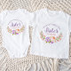 Adorables chemises pour sœurs assorties personnalisées avec le nom de votre fille. Ce joli motif floral présente une couronne de laurier aquarelle de fleurs rose saumon et violettes. Le texte indique "Meilleure grande sœur au monde" ou peut être personnalisé avec le texte de votre choix. Ajoutez le nom de votre fille ci-dessous ou utilisez les outils de conception pour choisir les polices et les couleurs de votre choix. Choisissez parmi une large gamme de styles et de tailles de chemises, de bébé et tout-petit à grands enfants, adolescents et adultes pour sœurs de tout âge !