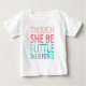 Ce beau t-shirt de bébé reprend la citation de Shakespeare : "Bien qu'elle ne soit que petite, elle est féroce." Les couleurs pastel sont saumon/pêche, rose, bleu et vert, ce qui en fait un assortiment parfait pour toute petite fille.