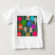 Ce t-shirt bébé a un design qui ressemble à des ornements en rouge, vert, bleu, rose, or, argent et blanc sur un arbre de Noël.