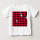 Ce t-shirt de bébé a un design moderne du milieu du siècle de diamants noirs solides à l'intérieur des contours en losange noir avec des lobs roses sous eux, le tout sur un champ de blanc.