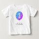 T-shirt pour invité d'honneur de premier anniversaire adorable et mignon avec une illustration d'un ballon violet et bleu et le numéro un dessus. Personnalisez le texte avec le vôtre. Illustré et conçu par Patricia Alvarez.
