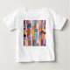 Ce t-shirt bébé a un design moderne boho de rectangles attachés à des lignes verticales de différentes tailles et des couleurs rétro.