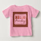 T-shirt Toddler, T-shirt rose Design graphique"HELLO Monday" Texte Les enfants portent des vêtements décontractés Jours de la semaine Thème Un t-shirt rose de la taille d’un tout-petit avec un design graphique sur le devant. Le design comporte un rectangle aux angles arrondis, à l'intérieur duquel le texte "BONJOUR Lundi" est écrit en lettres stylisées. Le mot "BONJOUR" est en majuscules et en blanc, tandis que "Lundi" est en cursive et partiellement recouvert sur "BONJOUR". La couleur arrière - plan dans le rectangle est une teinte plus foncée de rose ou de brun clair, créant un contraste avec la couleur du t-shirt