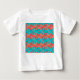 Ce t-shirt de bébé a un design art déco de cercles orange et turquoises à l'intérieur de triangles orange et turquoises à deux tons.