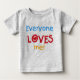 Un mignon, un amusement, une conception colorée des textes sur le T-shirts, des combinaisons, un T-shirts raglan, des casquettes, des robes sans manche, des chemises et des robes de ruche, des combinaisons organiques, des sweatshirts, des sweat - shirts à capuche de pull, un T-shirts foncé, et tout autre habillement qui indique chacun m'aime avec le texte de bleu, de rouge, et l'or.