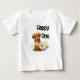 Chien marron mignon avec fleurs et texte HAPPY ONE