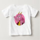 T-shirt bébé avec illustration de la tête d'un mignon petit dragon volant rose, en cercle rose, imaginaire mignon / conception de conte de fées pour enfants par Maxi Harmony