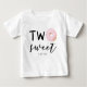 Un t-shirt d'anniversaire mignon pour une fille à porter à leur fête d'anniversaire de thème beignet avec une beigne rose avec givrage blanc. Le texte dit "Two Sweet". Vous pouvez customiser cet élément en ajoutant le nom de votre enfant au bas.