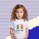 Drapeau pixelisé isolé de Roumanie avec le texte : Bleu. Jaune. Red. Forever roumain