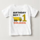T-shirt mignon pour une fête sur le thème de la construction. Personnalisez-le avec le nom de votre enfant.