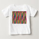 Ce t-shirt de bébé a un design géométrique de rayures colorées courant verticalement.