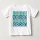 Ce t-shirt bébé a un design géométrique d'hexagones dans quatre tons de bleu sur un champ de rayures bronzées dans deux tons.