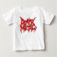 Une conception d'art-logo représentant le genre : "Métal de la mort" - est un subgenre extrême de la musique de métaux lourds. Il utilise typiquement les guitares fortement tordues et bas-accordées, jouées avec des techniques telles que l'amortissement de paume et la cueillette de trémolo, le chant et les cris perçants profonds de grognement, doubles les techniques comportantes de mise en tambour agressives et puissantes de battement de coup-de-pied ou de souffle, les clés ou l'atonality mineur, le rythme brusque, la clé, et les changements de signature de temps et les progressions chromatiques de corde. Les thèmes lyriques du métal de la mort peuvent appeler la violence, la religion (parfois satanisme), l'occultisme, l'horreur de Lovecraftian, la nature, le mysticisme, la mythologie, la philosophie, la science-fiction, et la politique film-stylisés par slasher, et ils peuvent décrire des actes extrêmes, y compris la mutilation, la dissection, la torture, le viol, le cannibalisme, et la nécrophilie.