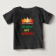 T-shirt bébé avec le texte "Know My Worth" en couleurs africaines avec une couronne dorée sur le dessus. Le dos est orné d'un panneau en or.