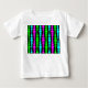 Ce t-shirt pour bébé a un design moderne du milieu du siècle de rectangles ronds rose, vert et bleu néon, de taille croissante et décroissante, fonctionnant verticalement sur un champ de noir.