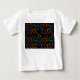 Ce t-shirt bébé a un design géométrique de groupes de trois ovales aux couleurs néons éparpillés sur un champ de noir.
