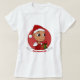 T-shirt féminin avec l'illustration d'un joli bébé souriant joyeux ou garçon, le bébé porte des vêtements rouges et blancs et tient un cadeau; avec texte modifiable modèle pour votre nom ou message, Noël vacances design