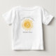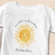 Ce T-shirt bébé adorable présente un soleil jaune souriant et la phrase "Notre Petit Rayon De Soleil" dans une typographie script stylée. Il est facilement personnalisable. Aquarelle originale © Michele Davies.