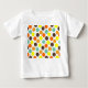 Ce t-shirt de bébé a une conception géométrique de points bleus, oranges, jaunes et marron.