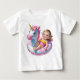 A cute young girl gently drifts on a pink and white unicorn float, gliding across a crystal-clear, blue swimming pool.
