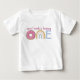 Personnalisez le tee-shirt du premier anniversaire de votre bébé avec son nom. Un "un" fantaisiste et mignon fait d'un arc-en-ciel et d'un donut.