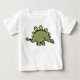 Un stegosaurus vert de bande dessinée souriant heureusement au-dessus de quelque chose drôle.