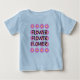 T-shirt bébé, couleur bleue, images de fleurs, texte sur.