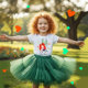 Jolie petite fée assise avec des cheveux orange et des cœurs autour