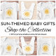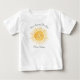 Ce T-shirt bébé adorable présente un soleil jaune souriant et la phrase "Voici venir le fils" en typographie script stylée. Il est facilement personnalisable. Aquarelle originale © Michele Davies.