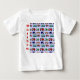 Ce t-shirt bébé a un design novateur de camions et de bus en rouge, bleu, vert et marron sur un champ de bleu clair.