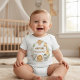 This personalized safari baby shirt features adorable safari animals arranged around a custom name design, illustrated in a soft, elegant nursery watercolor style. The gentle neutral color palette and clean composition create a timeless look that feels both charming and premium.