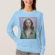 T-shirt Portrait de femme Radiant Spirit C'est un t-shirt portrait peint d'une femme. Le design a été créé avec de l'art génératif. L'oeuvre d'art met en scène une femme qui porte le vert et la lavande. L'Esprit Radiant est en haut de l'image en texte argenté. Vous pouvez modifier le texte à l'aide du bouton Personnaliser. Le portrait de la femme et l'esprit radiant sont sur le devant et le dos du t-shirt.