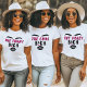 T-shirt drôle rose vif, noir et blanc pour l'enterrement de vie de jeune fille. Procurez-en un pour chaque membre de votre groupe et personnalisez-le avec leur type de personnalité.