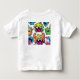 This is a shirt that has cute little monsters on it that are so colorful and cute the art work is cartoons and created digitally. All the monsters are ready to play their favorite game!