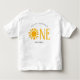 Ce T-shirt pour le premier anniversaire est orné d'un soleil aquarelle jaune et dit "Notre petit soleil a un an".