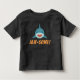 Le t-shirt à thème mignon requin présente un requin bleu souriant avec un "mâchoire" en-dessous de la bande dessinée orange en lettrage.