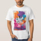 graphique t-shirt pour un événement de course couleur. Sur un t-shirt blanc, aux couleurs noir, rose, bleu, orange et violet. Le texte sur la chemise devrait dire TMS sur le dessus et COLORPALOOZA sous elle