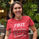 Ce t-shirt rouge est parfait pour des vêtements de Noël personnalisés assortis aux vêtements de famille. La légende dit "Premier Noël comme grand-mère" dans une police moderne blanche. Voir mon "Costume de Noël et accessoires de famille" pour trouver des articles de coordination pour les autres membres de la famille. Pour plus de personnalisation ou d'autres articles correspondants, n'hésitez pas à me contacter.