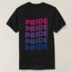 Le mot "PRIDE", dans une police arrondie, en forme d'onde, tapait cinq fois verticalement, chaque ligne dans une couleur différente du drapeau bisexuel, avec des rayures supplémentaires, un rose-violet et un bleu-violet (violet).