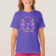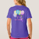 Nounours princesses violets habillés de jolies couronnes jaunes et de fleurs roses, bleues et vertes, dansant parmi les fleurs et tenant un tas de ballons colorés avec le mot HAPPY sur eux. Cette chemise d'anniversaire de 7 ans apportera un sourire à une fille spéciale pour son 7ème anniversaire. Personnalisez avec son nom pour le rendre spécial. Design original par Anura Design Studio.