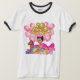 Illustration d'une adorable petite fille habillée en rose, avec des cheveux en petits pains aux arcs roses et tiara princesse. Entouré de jouets et avec des ballons roses et or au-dessus avec des étoiles et des bannières de lune. Cadeau mignon pour les parents, baby shower, révélation de genre ou cadeau d'anniversaire de naissance.