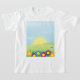 Un paysage pittoresque de prairie printanière avec des fleurs et une abeille. Ce design semble vraiment efficace sur ce T-shirt Girls