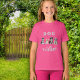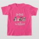 T-shirt rose vif pour fille avec motif de chiens. Personnalisez le texte pour dire "promeneuse de chien", ou "gardienne de chien", ou "gardienne d'animaux", comme vous le souhaitez. Quatre chiots à fourrure sont assis côte à côte dans le design. Les races incluent Husky, Corgi, Border collie et Dalmatien.