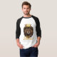Ce t-shirt à manches 3/4 comporte une double police d'impression en gras avec des lettres jaunes et blanches affichant les verset "Proverbes 30:30", ainsi que la citation avec le visage d'un lion portant une couronne du roi au-dessus du thème de la foi. Ils ont un corps blanc ou cendré avec des manches assorties et un col avec des tiges à deux aiguilles cousues au fond et à la manche pour une longévité.