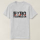 PyroTechnician t shirt with burning flames. Vintage typography design with hot flaming fire bursts. Custom tee color. Pyrotechnics clothing.