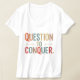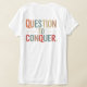 Le design du t-shirt comporte l'expression "Question à conquérir" en caractères gras et multicolores. Les couleurs sont vives et attrayantes, créant une atmosphère dynamique et énergique. Le texte est organisé de manière à suggérer un défi ou un casse-tête à résoudre, ce qui en fait un choix parfait pour ceux qui aiment les activités intellectuelles ou qui surmontent les obstacles. Le design est épuré et minimaliste, ce qui permet au texte gras d'être le point central.